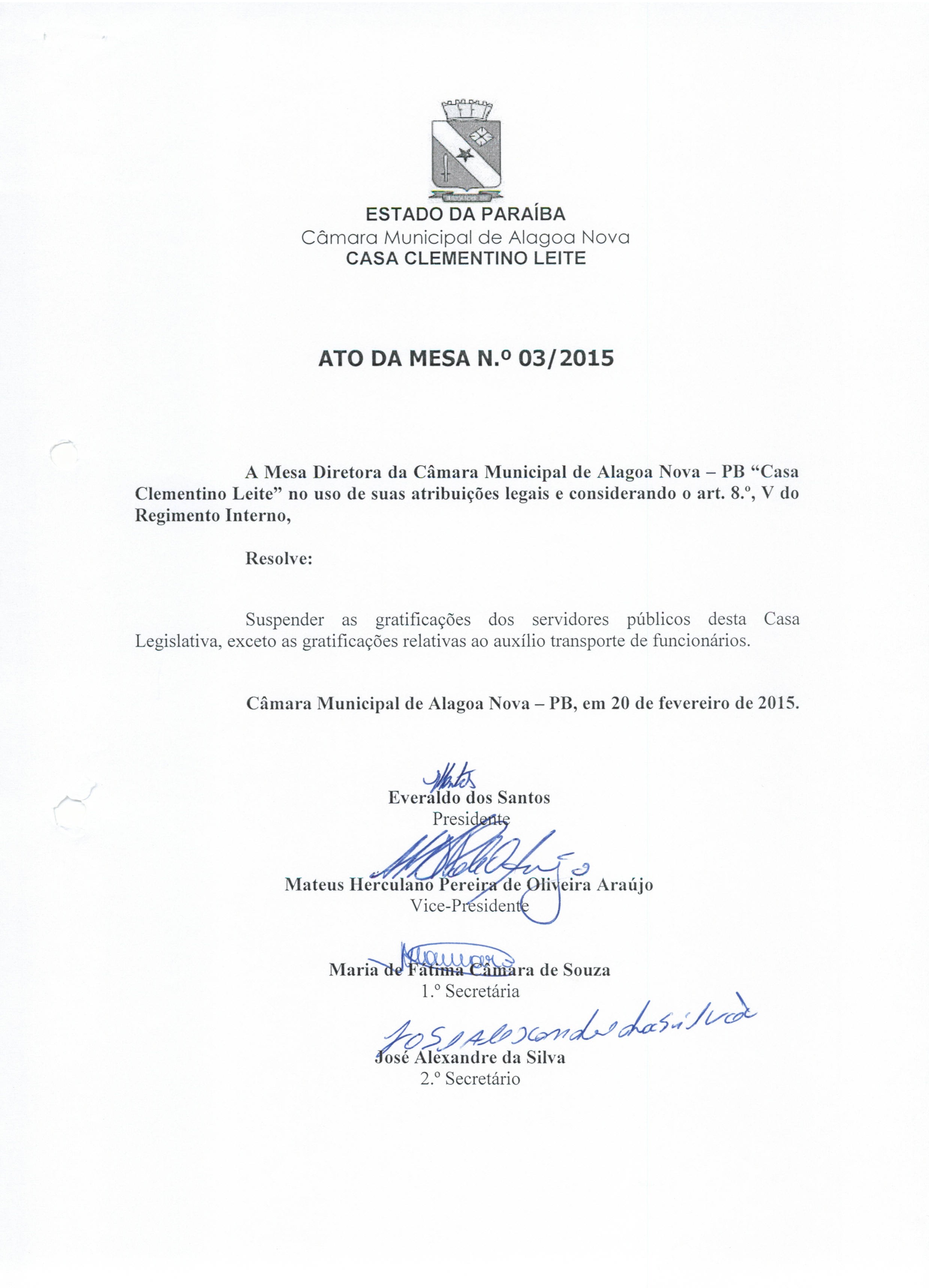 Suspende as gratificações dos Servidores Públicos desta Casa.