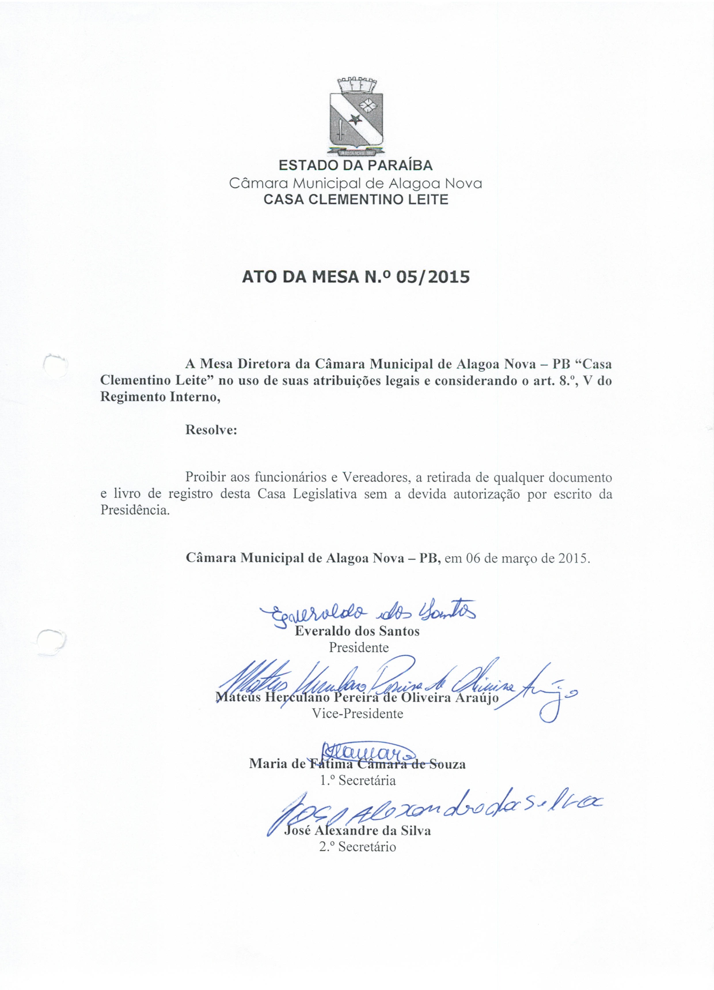 Proíbe a retirada de documentos desta Casa Legislativa, pelos funcionários e/ou Vereadores sem que haja a devida autorização por escrito da Presidência.